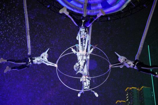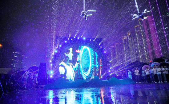 科技互动快闪上演了《广场舞天团 vs 外星特使》,融合外星机械舞、武术、街舞与传统舞蹈等多元文化碰撞,不同舞种之间的热力battle让传统文化与潮流文化碰撞出别样的火花。这些创意不仅展现了黔南文化的包容性,更通过“科技+娱乐”的形式,让年轻群体感受到黔南文化的新表达。