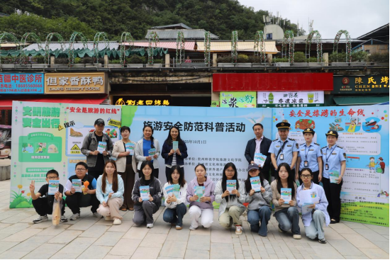 活动现场,来自贵州师范学院的师生志愿者在各单位工作人员的协同下,积极为游客答疑解惑,将专业的旅游安全知识转化为通俗易懂的实用信息。许多游客表示,此次活动内容解渴、管用,有效增强了自身出游的风险防范能力和文明旅游意识。