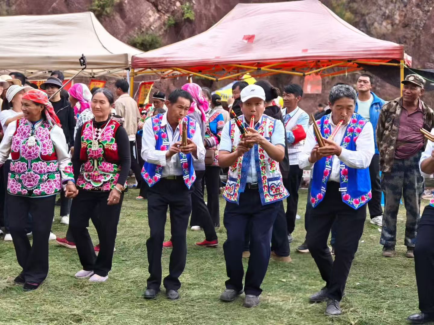 10月24日,云南省祥云县普淜镇朝山节在万众期待中盛大启幕,彝族群众身着节日盛装,怀着虔诚之心,汇聚在一起载歌载舞,共同上演了一场融信仰、民俗、商贸与娱乐于一体的文化盛宴。