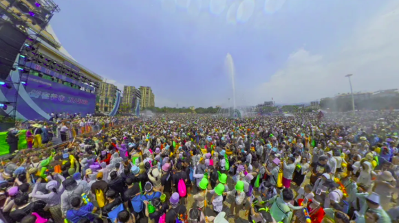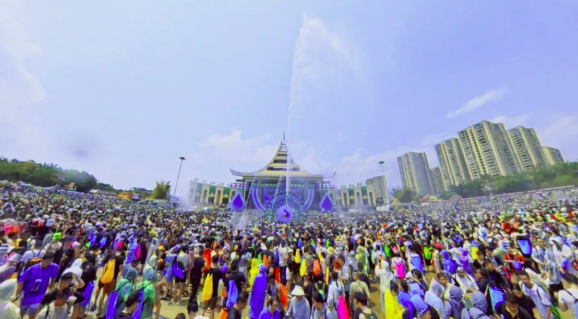 水是生命的源泉,是吉祥的象征。伴着欢快的象脚鼓声和铓锣声,身着盛装的各族群众在领队的带领下围着跳起了“嘎伴光”,人群如潮水般涌来,在芒市广场汇聚成象征着民族团结进步的同心圆,奏响铸牢中华民族共同体意识、携手奋进新时代的激昂乐章。鼓声震天,水花飞溅,吉祥的圣水映着阳光折射出七彩光芒,源源不断把祝福洒向人群。
