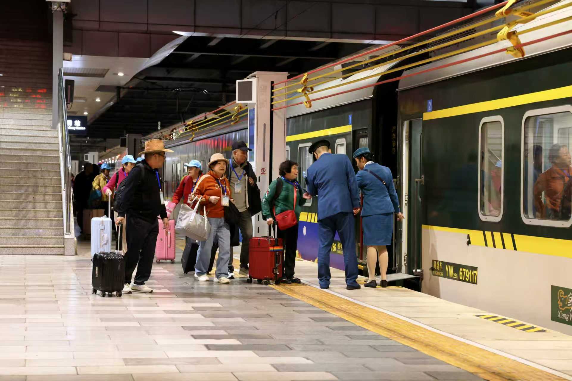 该负责人说,考虑到出游人员年龄结构偏长的特点,铁路部门对列车车厢和乘车设备进行适老化改造,加宽卧铺车梯和护栏、增设铺位置物架和多孔电源插座,每节车厢配备坐便器和防滑扶手,加装紧急呼叫按钮,全面提升游客出行体验。
