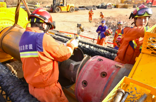 大口径水平钻机救援法:是利用大口径水平钻机在隧道坍塌体上方或侧方钻进大直径孔,形成救援通道,直接将被困人员提升至地面或通过通道进行水平营救的一种高效救援方式。它具有成孔速度快、作业安全、对坍塌体扰动小等优点,是目前隧道坍塌救援的首选方案之一。