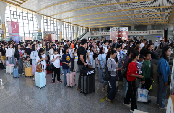 5月31日端午节当天,为增强站车节日文化氛围,云南铁路各车站、部分列车集中开展“美好旅途‘粽’享端午”文化互动活动。“除了吃粽子,哪位小朋友知道其他端午节习俗?”在昆明开往红河的 C 552 次列车上,乘务员早早准备好了彩绳、粽叶,邀请旅客一同包粽子、系彩绳,针对端午“省内游”“周末游”客流增大,列车上结合文明乘车开展特色互动问答,弘扬传统文化同时倡议旅客共同维护列车出行环境。“今天是端午,我们准备了很多菖蒲、鲜花,编成迷你花束送给旅客,共同纪念端午节。”红河站旅客在车站工作人员的带领下,将粽叶撕成细条,再细密地编成中国结,孩子和家长玩得高兴,候车大厅里也是一片喜庆祥和的气氛。