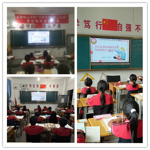 网络是把双刃剑,安全使用是关键。为深入贯彻习近平总书记关于网络强国的重要思想,切实做好2025年国家网络安全宣传周网络安全保障工作,消除隐患,筑牢防线,维护学校网络安全态势稳定。9月16日,永新中心学校开展了以“网络安全为人民,网络安全靠人民”为主题的国家网络安全宣传周校园日宣传活动。