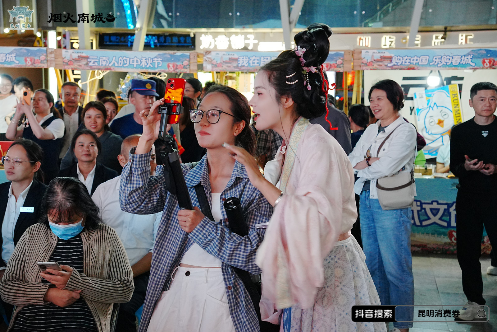 本次活动还邀请了春天礼、蟹江族、海集商贸、老俞花摊、菇得蘑您、青花汾酒体验中心、讲武文创、艾克3D打印潮玩体验店、小小马帮、BUYERS SHOP、晨曦文玩手作、山谷有柴、木易然手、S.n水晶手作、三个铃铛、醒室等文创精品、非遗手工、国货潮玩等企业参加,各家拿出都看家本领,引来游客和市民纷纷驻足,品尝口味丰富的滇式月饼中享受多元创新消费场景的购物新体验,并在精美的中秋氛围打卡点拍照留念。