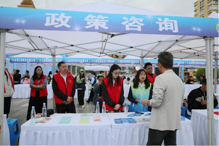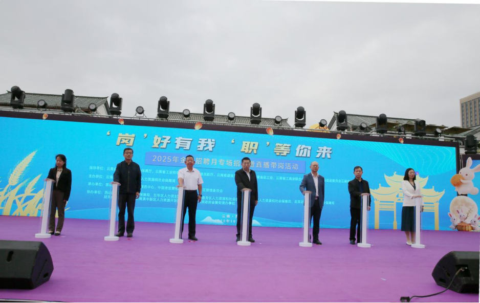 10月10日,由云南省人力资源社会保障厅、云南省工业和信息化厅、云南省民政厅、云南省退役军人事务厅、云南省总工会、云南省工商联、中国国际贸易促进委员会云南省分会共同指导,省、市、区三级公共就业服务机构共同主办的“‘岗’好有我、‘职’等你来”—2025年金秋招聘月专场招聘暨直播带岗活动在昆明市西山区金碧广场举行。