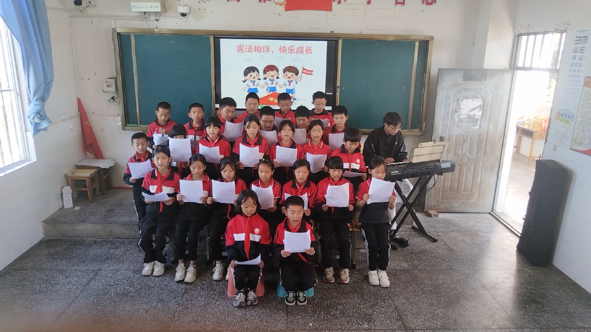 歌曲传唱,提升实效。学校通过组织学生传唱歌曲《宪法伴我们成长》,让学生在优美的旋律和贴近生活的歌词中引发情感共鸣,在轻松愉快的氛围中自觉接受宪法教育,深刻地感受到宪法与现实生活的紧密联系,吸引了学生主动参与到宪法学习中来,迅速扩大了宪法宣传的覆盖面和影响力,形成了校园法治文化记忆,让宪法精神在师生心中留下深刻的印象。