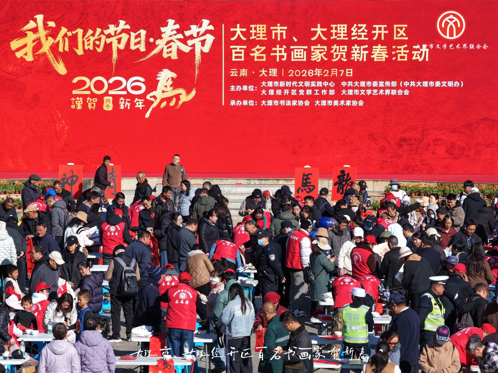2月7日上午,一场充满传统文化韵味的“我们的节日·春节”贺新春写春联绘画吉祥如意活动在云南省大理经济开发区明珠广场举行。本次活动由大理市、大理经开区联合组织,近百名书画家参与,现场气氛喜庆热烈,为即将到来的马年春节增添了浓厚的文化气息。