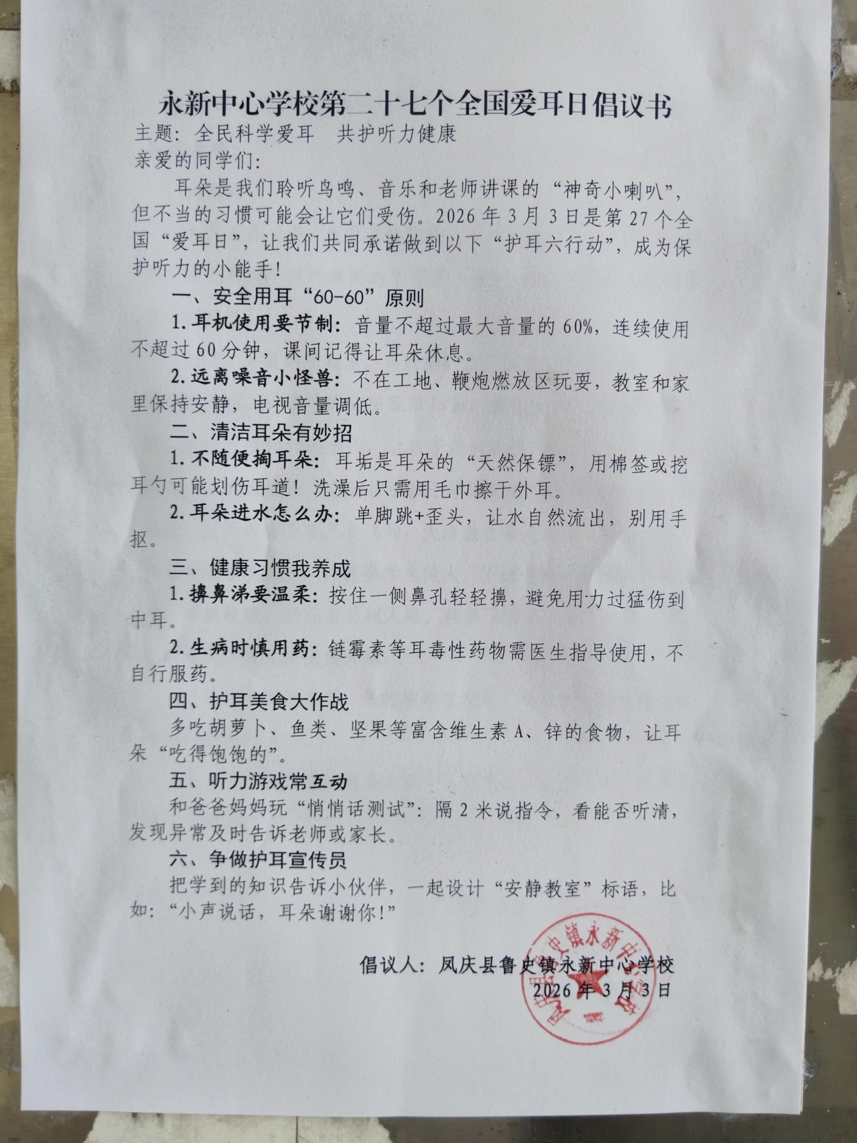 本次爱耳日宣教活动,实现了全方位、多层次、全覆盖的健康教育,有效提升了全体师生的爱耳护耳意识和健康素养。下步,永新中心学校将持续把健康教育融入日常教育教学,常态化开展健康宣传活动,引导学生以最佳状态投入到学习和生活中,全力守护学生健康成长。