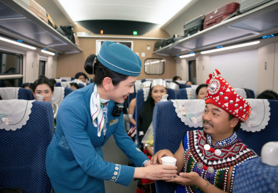 一是客运量质齐升,助力“人享其行”。全线单月旅客发送量由开通初期的60万人次增至最高225万人次。中国段,日均开行客车从8列增至最高86列,单日最高发送旅客超9万人次;老挝段,日均开行旅客列车由开通初期的4列增至最高18列,普速旅客列车单列扩编为10辆以上,单日最高发送旅客1.2万人次。精心组织跨境旅客运输,中国昆明至老挝万象间开行的国际旅客列车增至4列,每趟旅客列车跨境旅客席位由初期250个增至420个,出入境人数由初期每天300人次增至最高1640人次,已累计开行国际旅客列车3190余列,发送跨境旅客超80万人次。