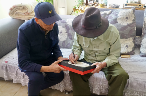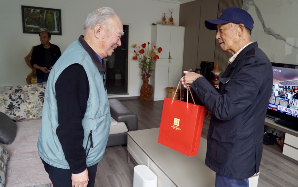 慰问过程中,慰问组为每位老战士送上了一份精心准备的“胜利”饼茶纪念品和敬老慰问金,并请老兵们在胜利饼茶上签字留念。