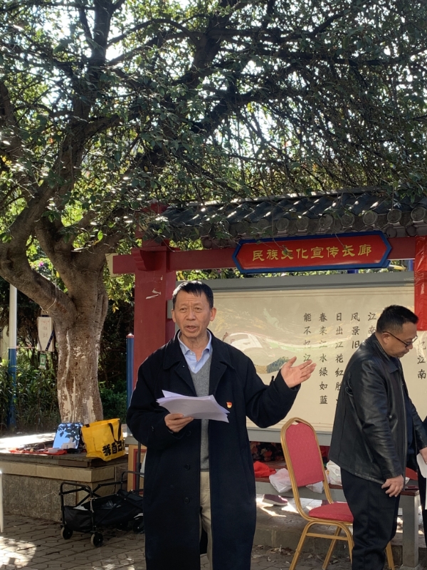 活动中,爱国被赋予更宽广的内涵。云南省老干部诗词协会的成员以诗词歌颂祖国,云南说法律师事务所的律师以专业维护公平正义,社区餐饮企业代表以诚信经营服务群众……刘爱国结合2024年实施的《中华人民共和国爱国主义教育法》指出:“爱国不仅是情怀,更是行动。每个人在各自岗位上恪尽职守、奉献社会,就是在实实在在推动国家进步。”
