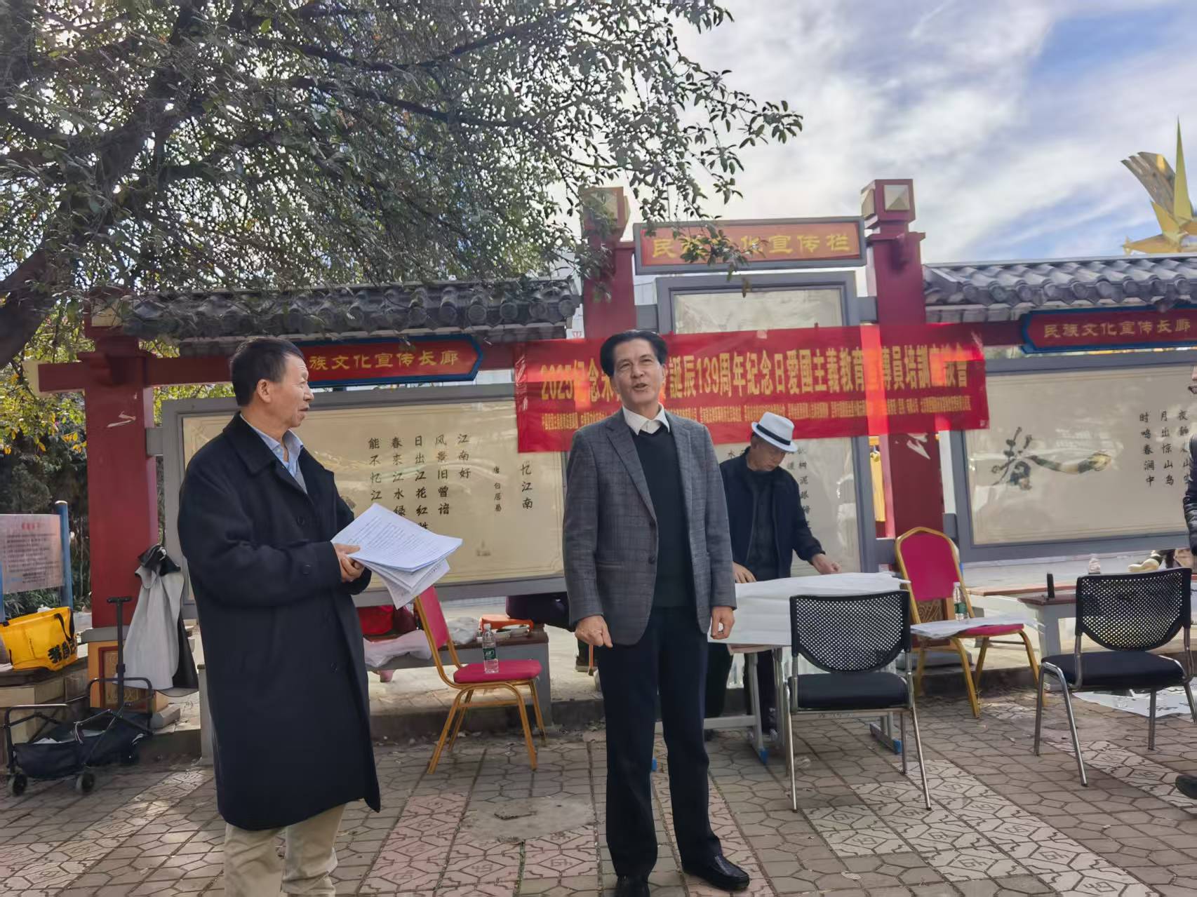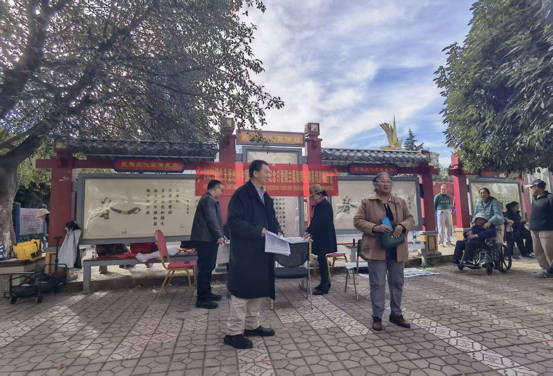 12月1日下午,昆明市盘龙区金星小区文化广场暖意融融,一场以“缅怀先辈精神,践行爱国法治”为主题的座谈活动在这里温情举行。活动由三家单位联合主办、十家单位共同支持,旨在纪念朱德总司令诞辰139周年,深入探讨新时代爱国精神的生动实践。39位来自退役军人、律师、企业家、文艺工作者、侨联代表等各行各业的嘉宾围坐一堂,共同回顾历史、交流感悟,让“爱国”这一宏大主题在平凡故事中落地生根。