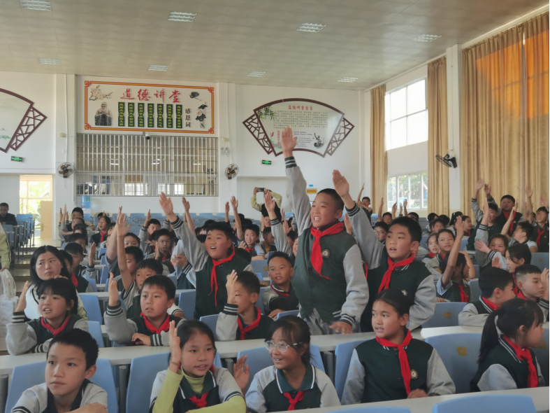 互动环节,在王老师的提问下,作为小学生的他们丝毫不怯场,纷纷举起小手,踊跃回答问题。他鼓励孩子们“要学会尊重、理解不同文化,用友爱的行动影响身边人。”这便是“老少牵手红领巾”的意义,“我们老一辈将历史的火炬传递给你们,你们接过的,不仅是记忆,更是责任”王老师总结。