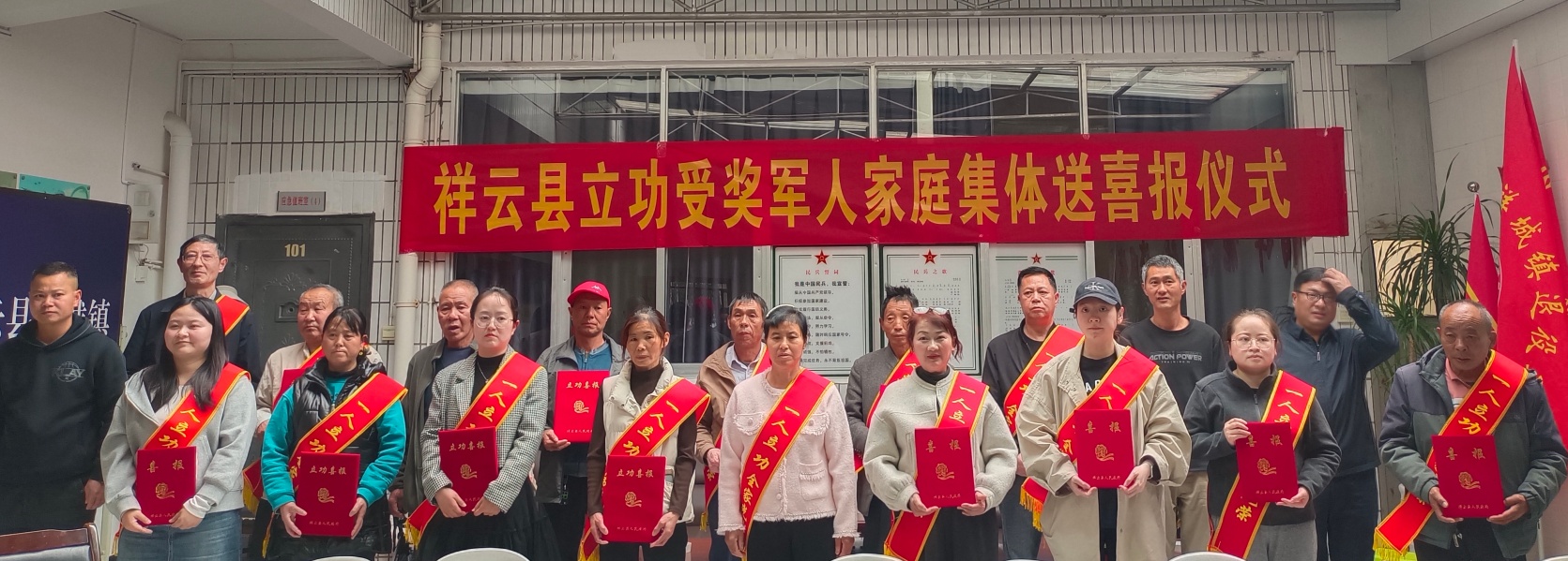 3月31日,云南省祥云县退役军人事务局联合县人武部举行立功受奖军人家庭集体送喜报仪式,为5名荣立三等功的军人家庭集体送喜报。
