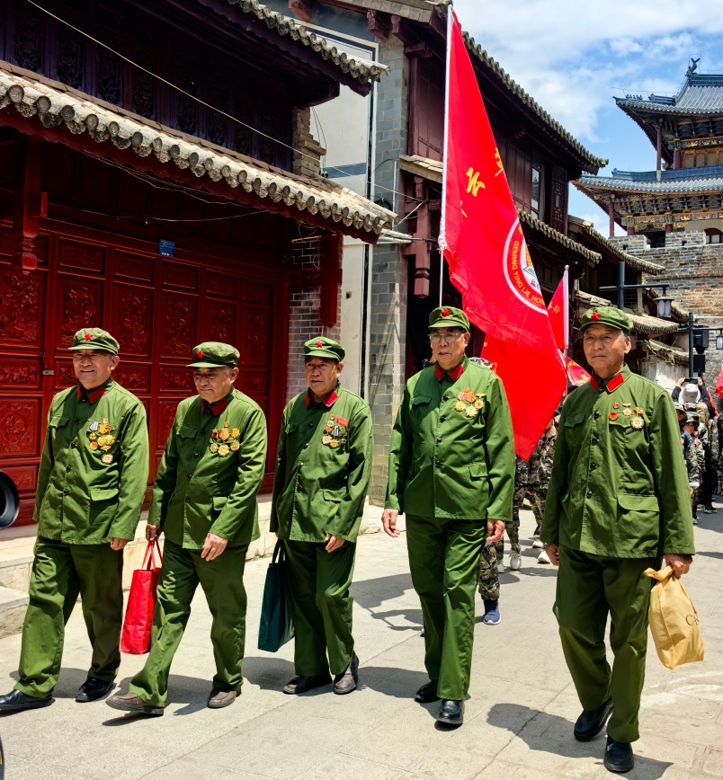 活动当天,现场气氛庄严肃穆。作为此次活动的特邀方阵,祥云县关爱退役军人协会的老兵们身着崭新戎装,胸前佩戴着军功章,身姿挺拔、神情庄重。他们中有参战老兵,有为祖国建设和国防建设作出贡献的铁道兵老战士和基建工程兵老战士,在参加了系列活动和聆听了红军长征过祥云的党史宣讲后,老兵们深受触动。