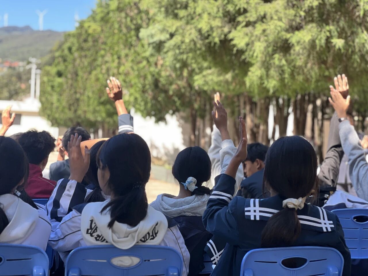 杨金美主任为孩子们送上祝福,鼓励大家既要追逐心中梦想,也要学会用法律守护成长之路,让愿望在法治阳光下顺利绽放。结合东山彝族乡地域特色,活动尾声,播放了彝族歌曲《不要怕》(彝语“阿杰鲁”)。