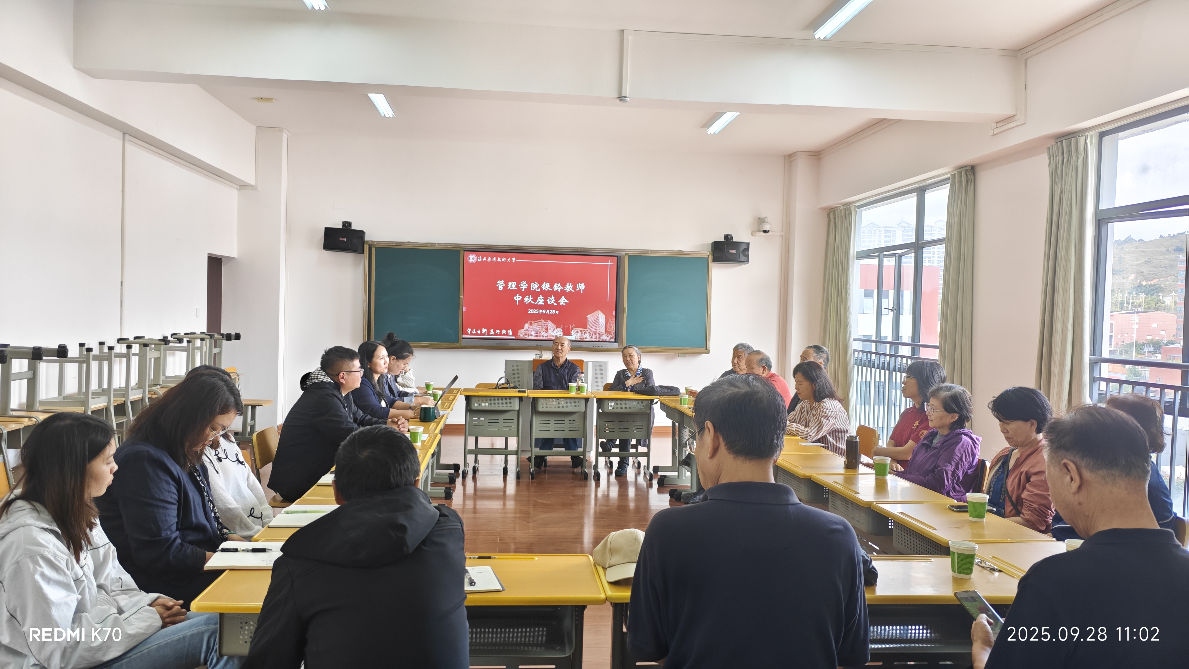 9月28日,中国传统中秋佳节即将到来之际,在云南省大理白族自治州的滇西应用技术大学管理学院的青年教职员工们怀着无比崇敬的心情,与学院的银龄教师们欢聚一堂,学院党委行政和全体师生,感谢银龄教师们远离家乡,将宝贵的经验和智慧奉献给党和国家的教育事业,他们共叙“传、帮、带”宝贵经验,畅谈学院未来的发展前景,大家其乐融融畅所欲言,共同的目标希望教育事业焕发更加绚丽的光彩。