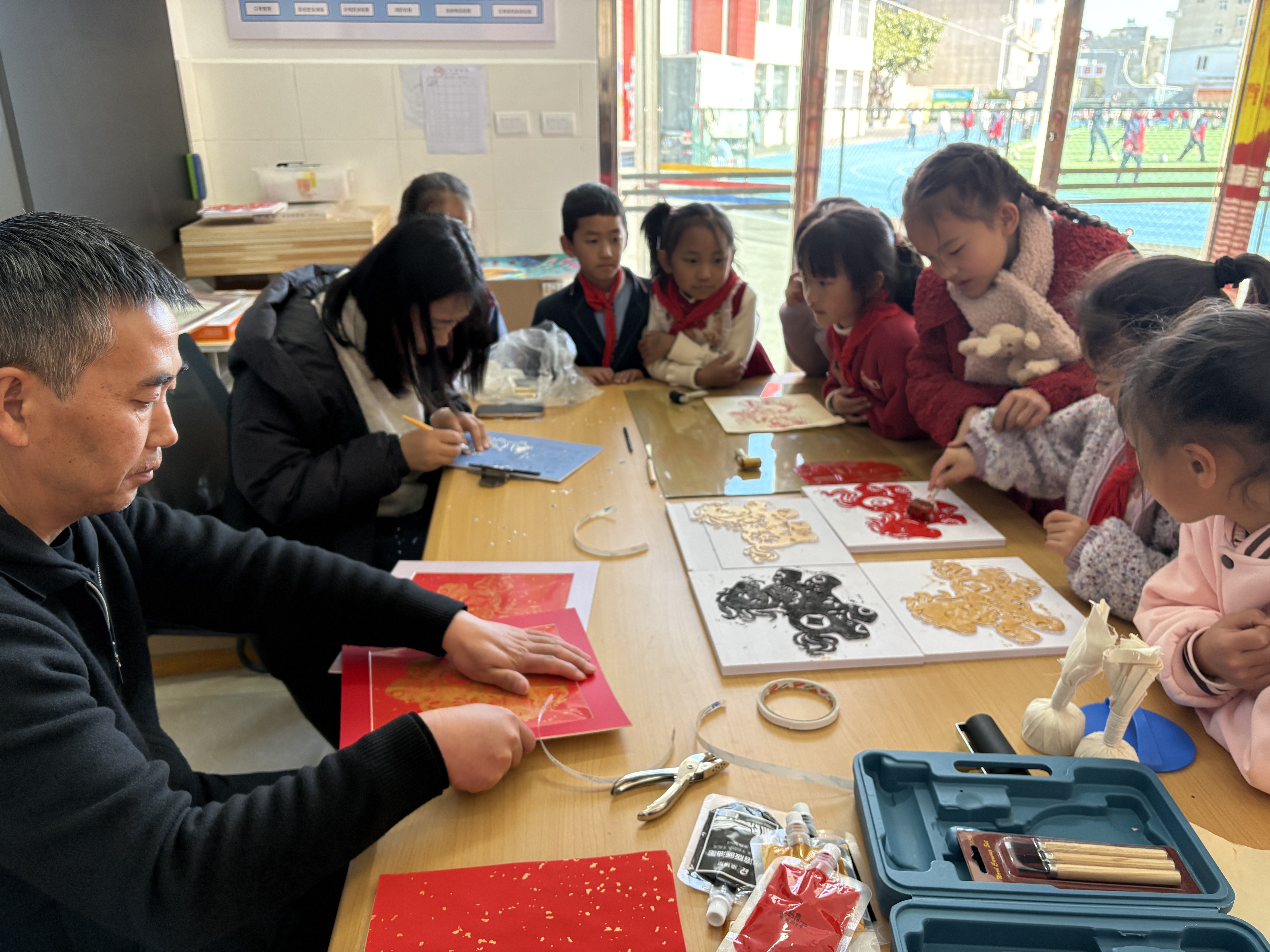 版画体验区的马年年画版是展览的一个亮点,吸引了众多师生驻足参与。孩子们化身小小非遗传承人,在老师的指导下,认识了版画工具,继续完成了版画的拓印、装框等工序。一张纸喜庆的马年年画在师生的合作下完成,鲜艳的色彩中饱含了孩子们对传统艺术的喜爱。