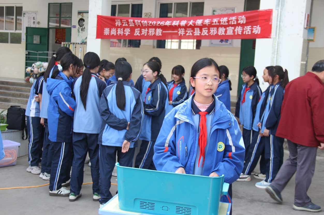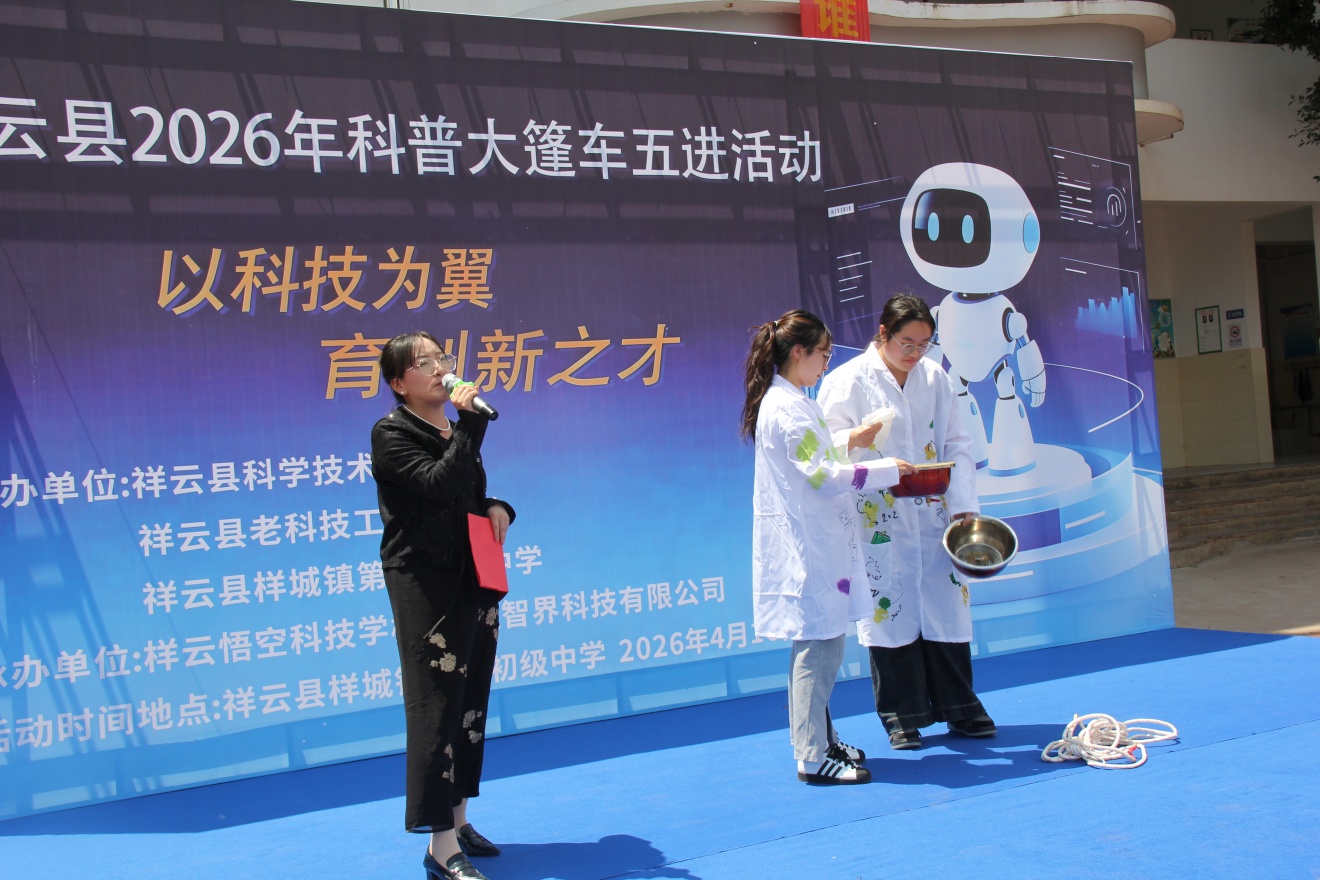 为进一步落实“双减”政策,丰富校园科技文化生活,激发青少年学科学、爱科学、用科学的浓厚兴趣,4月16日,由祥云县科学技术协会、祥云县老科技工作者协会、祥城镇第一初级中学主办,祥云县悟空科技学校、大理智界科技有限公司承办的祥云县2026科普大篷车五进活动,在祥城镇第一初级中学举行,通过持续开展科普大篷车进学校活动,点燃青少年的科学梦想。