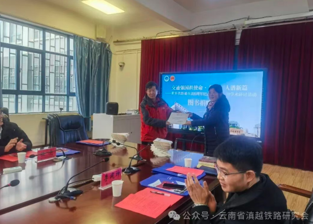 研讨会上,省滇越铁路研究会常务副会长王福永向学院赠送了其著作滇越铁路三部曲(嬗变、孤鸿、如故)和《现实与可能——滇越铁路研究文集》,昆明理工大学建筑与城市规划学院工程师张雁鸰赠送《百年滇越铁路——跨向山海的纽带》。