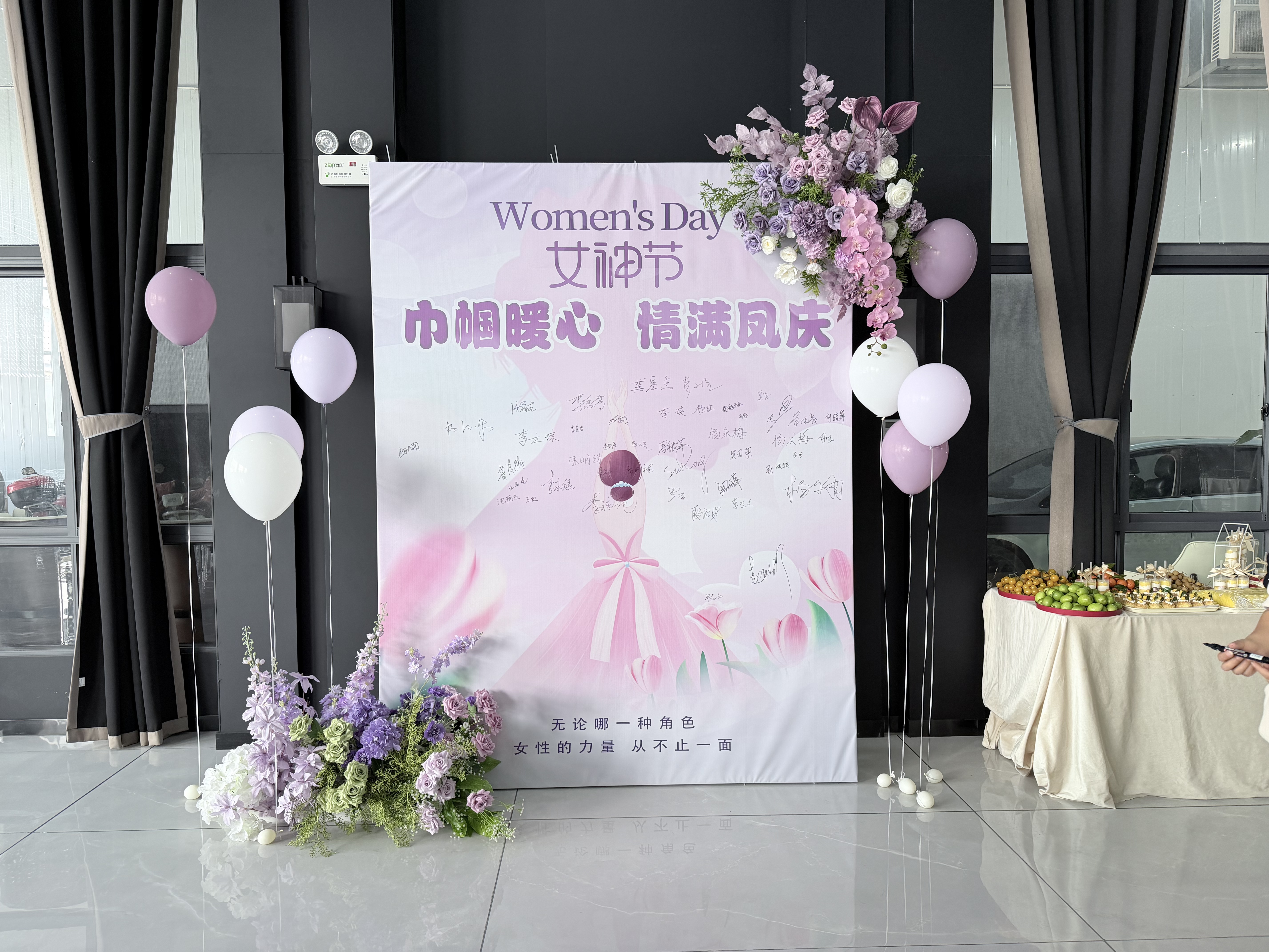 送温情,凝聚 “她” 力量。3月5日下午,“以花为媒 致敬巾帼”集体活动在仟禧园浪漫开启。活动精心设计签名墙签到环节,妇女干部们在签名墙上留下美好祝愿,定格珍贵瞬间。