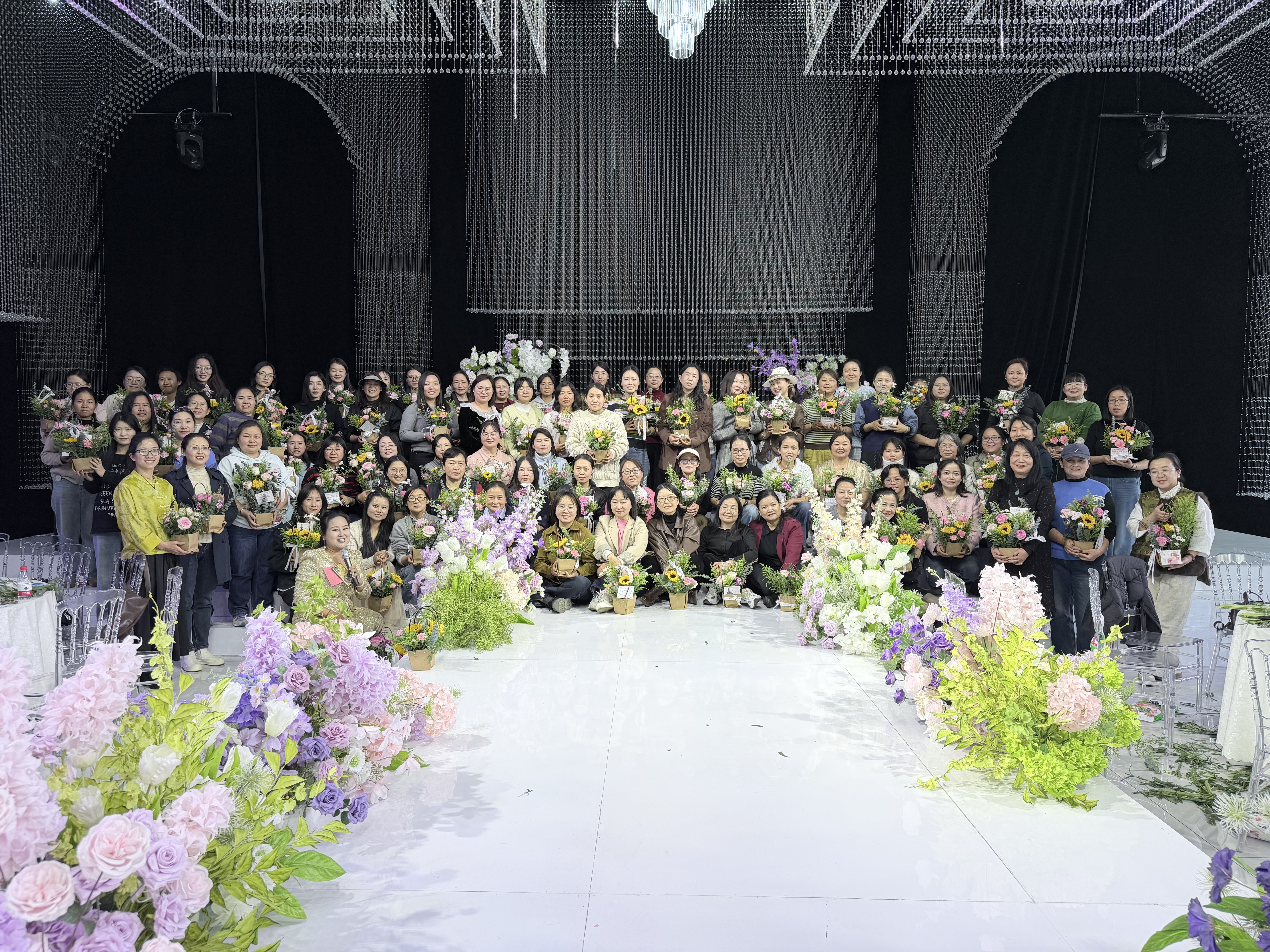 现场还设置了互动有奖小游戏直接将气氛推向高潮,大家踊跃参与、欢声笑语不断,在轻松愉快的氛围中增进交流、加深情谊。活动的重头戏——插花环节,在专业老师指导下,姐妹们巧手翻飞,将一朵朵鲜花精心搭配、创意组合,创作出一件件独具匠心的花艺作品。
