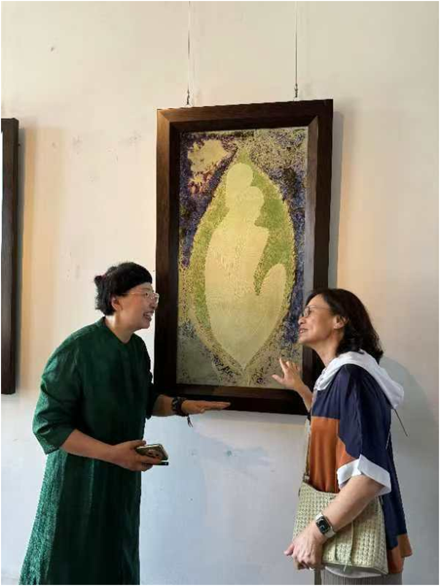 馆内,光影交错,错落有致的70余件艺术作品在柔和的光线中更显生动与美妙。洁白如玉的质感、高温颜色釉的斑斓厚重,经过金木水火土凝炼的每一幅陶瓷艺术作品都仿佛诉说着远古的故事,传递着自然的和谐与生命的律动,让人不禁沉醉其中,流连忘返。
