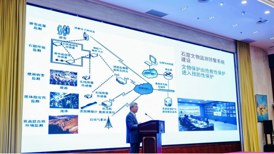 “敦煌石窟作为世界文化遗产,不仅是艺术的宝库,更是东西方文化交流的见证。”赵声良教授通过PPT展示了敦煌石窟的珍贵图片——斑驳的壁画上,飞天灵动的身姿、佛像庄严的面容、市井生活的生动场景跃然眼前,让在场嘉宾仿佛穿越时空,置身于这座千年艺术殿堂。