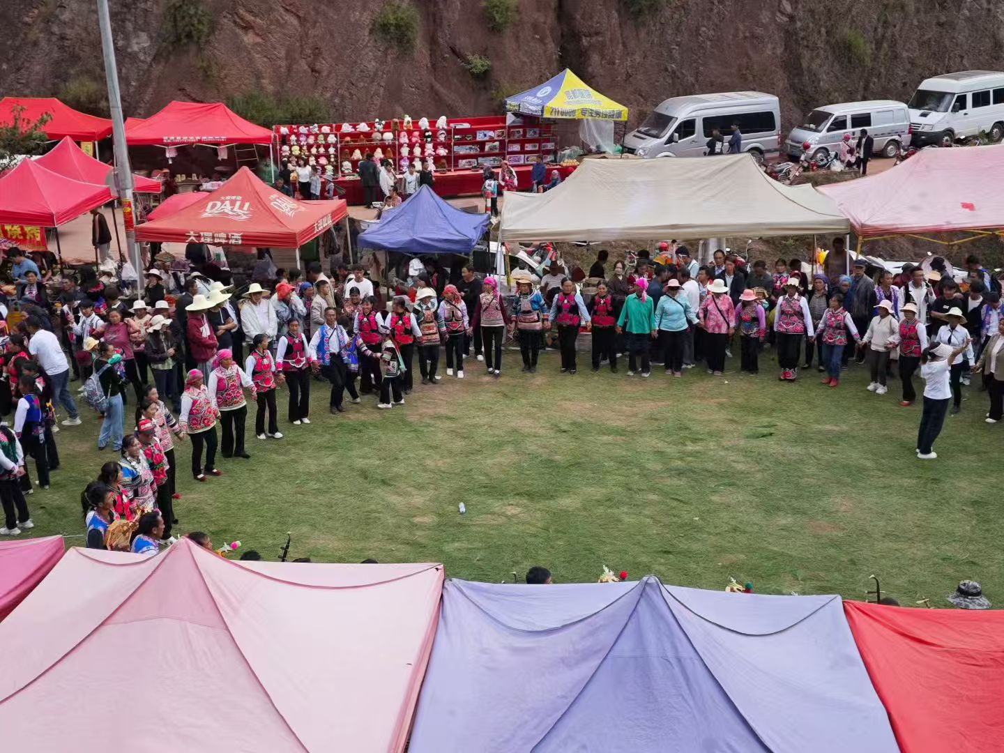 朝山节不仅是信仰的殿堂,更是一个热闹非凡的“山间集市”。从山脚到山顶,道路两旁摆满了各式各样的摊位。地道的普淜火腿、香气扑鼻的烤洋芋、酸甜可口的泡梨、手工编织的竹器、色彩斑斓的民族服饰……琳琅满目的商品让人目不暇接。