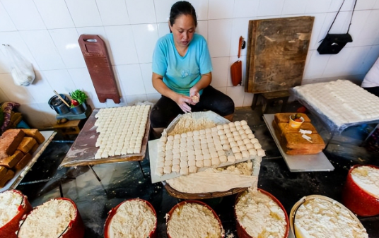 大板井旁,豆腐坊的豆香常年弥漫。建水西门豆腐的秘密,就藏在这口井水里。从泡豆到磨浆到点卤,各个环节必用大板井水。大豆选用本地白皮黄豆,可让一颗黄豆脱胎换骨的,终究是水。用大板井水做出来的豆腐,细滑鲜嫩,无论新鲜吃还是炭火烤,都别有风味。建水烧豆腐在清代中晚期便已享有盛名,其绝世仅有的秘诀便是这口“贵甲全滇”的西门井。同样的黄豆、同样的手艺,换一处水源,便做不出那个味。