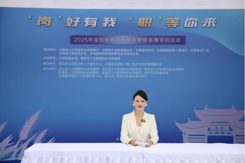 10月10日,由云南省人力资源社会保障厅、云南省工业和信息化厅、云南省民政厅、云南省退役军人事务厅、云南省总工会、云南省工商联、中国国际贸易促进委员会云南省分会共同指导,省、市、区三级公共就业服务机构共同主办的“‘岗’好有我、‘职’等你来”—2025年金秋招聘月专场招聘暨直播带岗活动在昆明市西山区金碧广场举行。