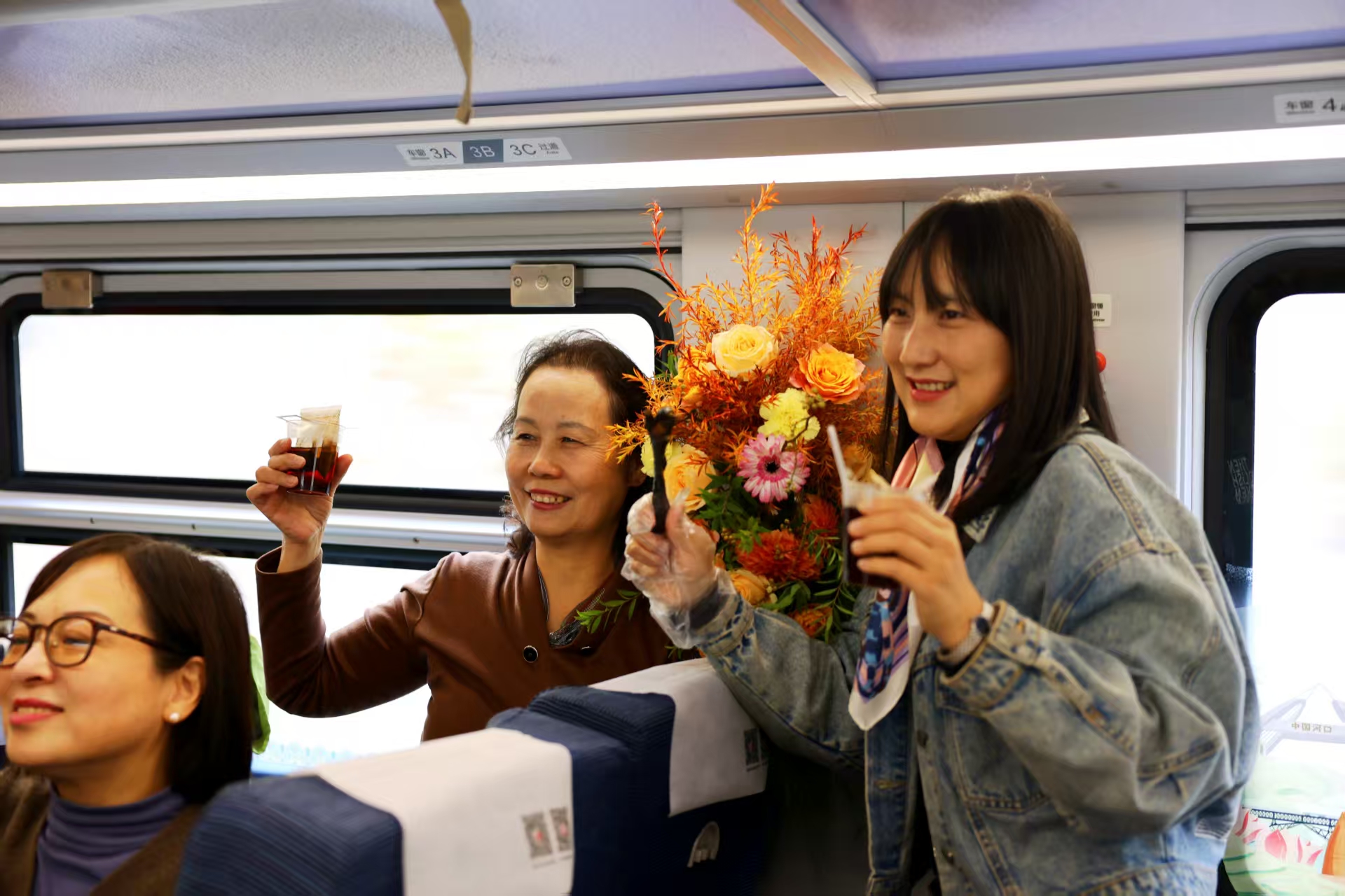 为给州庆之旅增添喜庆氛围,国铁昆明局联合红河州文旅部门在11月15日开行的C4222次列车上举办了特色文化活动。车厢内,建水民歌艺术家们献上了《石榴开花红彤彤》《请到建水来》等具有浓郁地方特色的小调联唱。互动环节中,旅客们踊跃参与学唱建水小调、学说建水方言,获胜者获得了题有书法作品的折扇,车厢化身为感受红河文化的流动课堂,欢声笑语不断。
