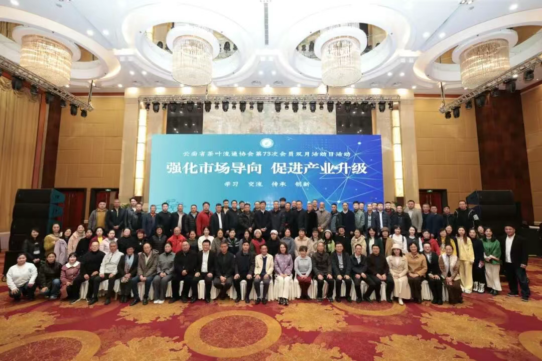 12月27日,云南省茶叶流通协会以 “强化市场导向,促进产业升级” 为主题的第73次会员双月活动日在昆明成功举办。中国农业国际合作促进会副会长、茶产业分会常务副会长魏有;云南省农业农村厅原副巡视员、中国国际茶文化研究会副会长毕虹;中国茶叶流通协会副会长、黑龙江省茶业产业发展促进会会长、大发国际集团董事会主席周敏 ;昆明海关进出口食品安全处处长邓永振;云南省农业科学院茶叶研究所所长申时全;中国日报云南记者站站长李映青;官渡区人大副主任、官渡区工商联主席石玲红,云南日报、昆明日报、《普洱》杂志社、环球在线新媒体,协会专家组专家及会员共计260余人齐聚一堂,共话云南茶产业高质量发展与国际化新路径。