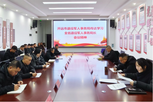 1月26日上午,开远市退役军人事务局传达学习全省退役军人事务局长会议精神,研究部署退役军人工作。