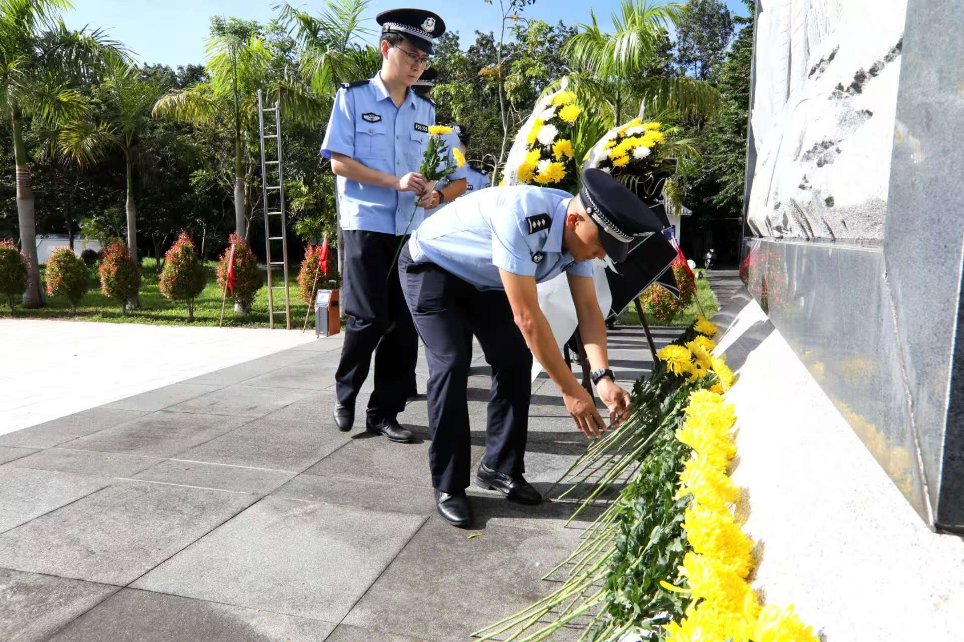 默哀毕,民警职工代表手持菊花,依次走到纪念塔和烈士墓前敬献鲜花。在柯占军、蔡晓东、李朝阳等烈士墓前,大家驻足凝视,认真聆听工作人员讲述英烈事迹——从边境剿匪战斗中牺牲的战士,再到新时代缉毒战场上倒下的英雄,每段故事都令人动容。