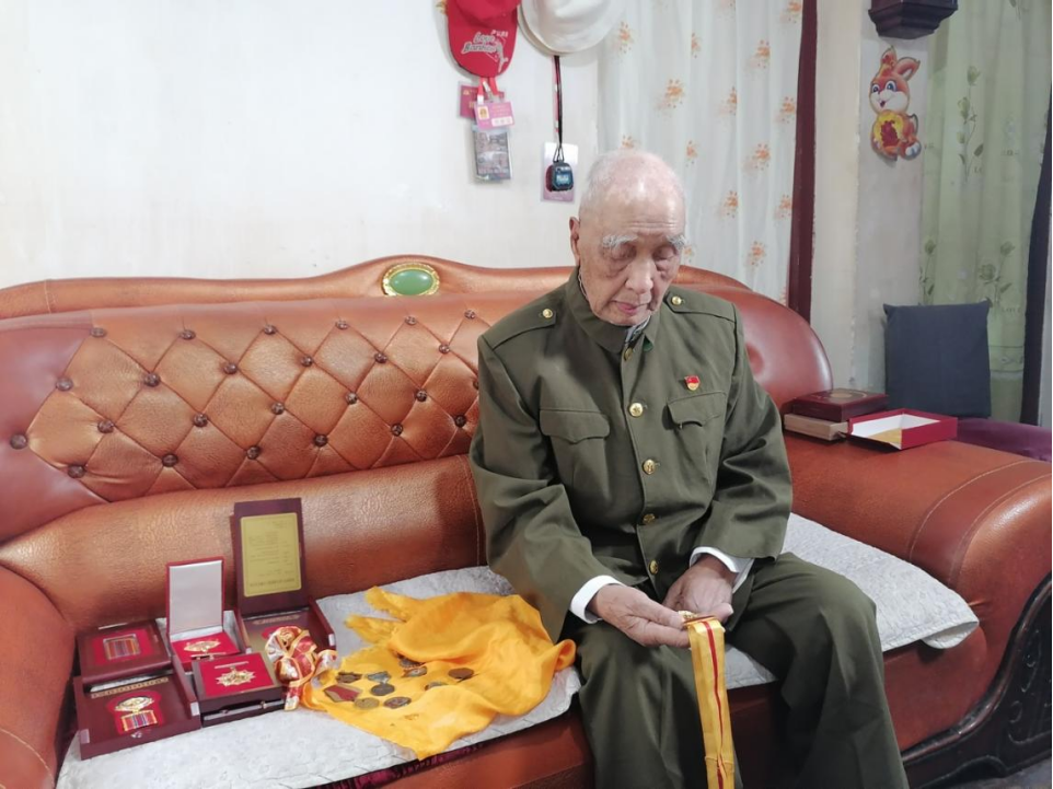 1024日上午11时许,慰问团队来到漾濞县,看望慰问抗战老兵姜溪东。今年98岁高龄的姜溪东老人,从山东到云南,从平津战役到抗美援朝战争等重大战役,在烽火岁月中身经百战,屡立战功为国家和民族的解放事业作出了卓越贡献。虽已近百岁,老人精神矍铄,见到慰问人员到来,脸上露出了欣慰的笑容。
