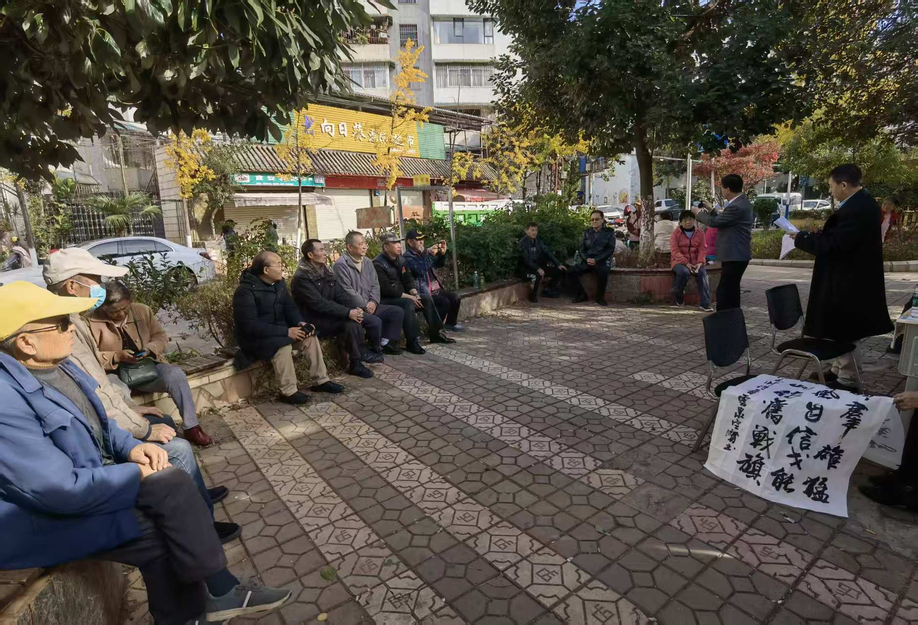 12月1日下午,昆明市盘龙区金星小区文化广场暖意融融,一场以“缅怀先辈精神,践行爱国法治”为主题的座谈活动在这里温情举行。活动由三家单位联合主办、十家单位共同支持,旨在纪念朱德总司令诞辰139周年,深入探讨新时代爱国精神的生动实践。39位来自退役军人、律师、企业家、文艺工作者、侨联代表等各行各业的嘉宾围坐一堂,共同回顾历史、交流感悟,让“爱国”这一宏大主题在平凡故事中落地生根。