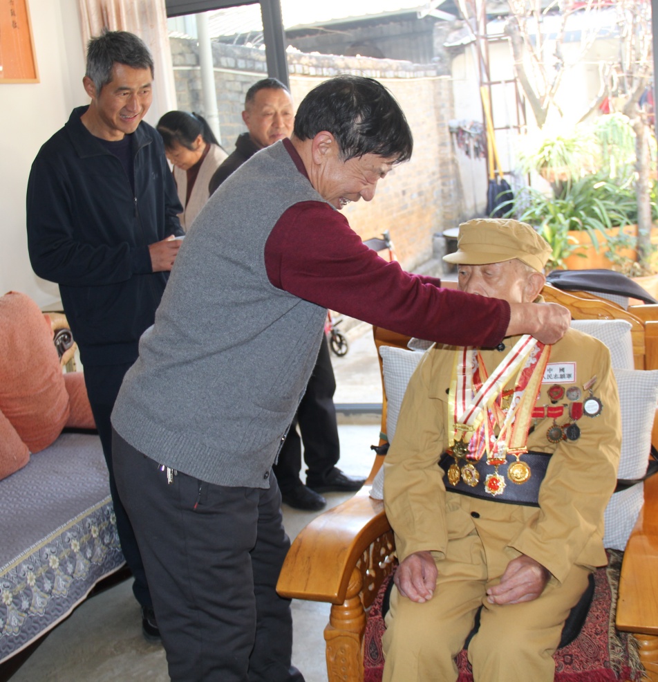 杨耀东副局长和祥云县关爱退役军人协会第一活动组组长、副组长以及部分联络员,迎着朝阳来到志愿军老战士袁恩财家中,为这位高龄志愿军老战士送上祝福和慰问金。
