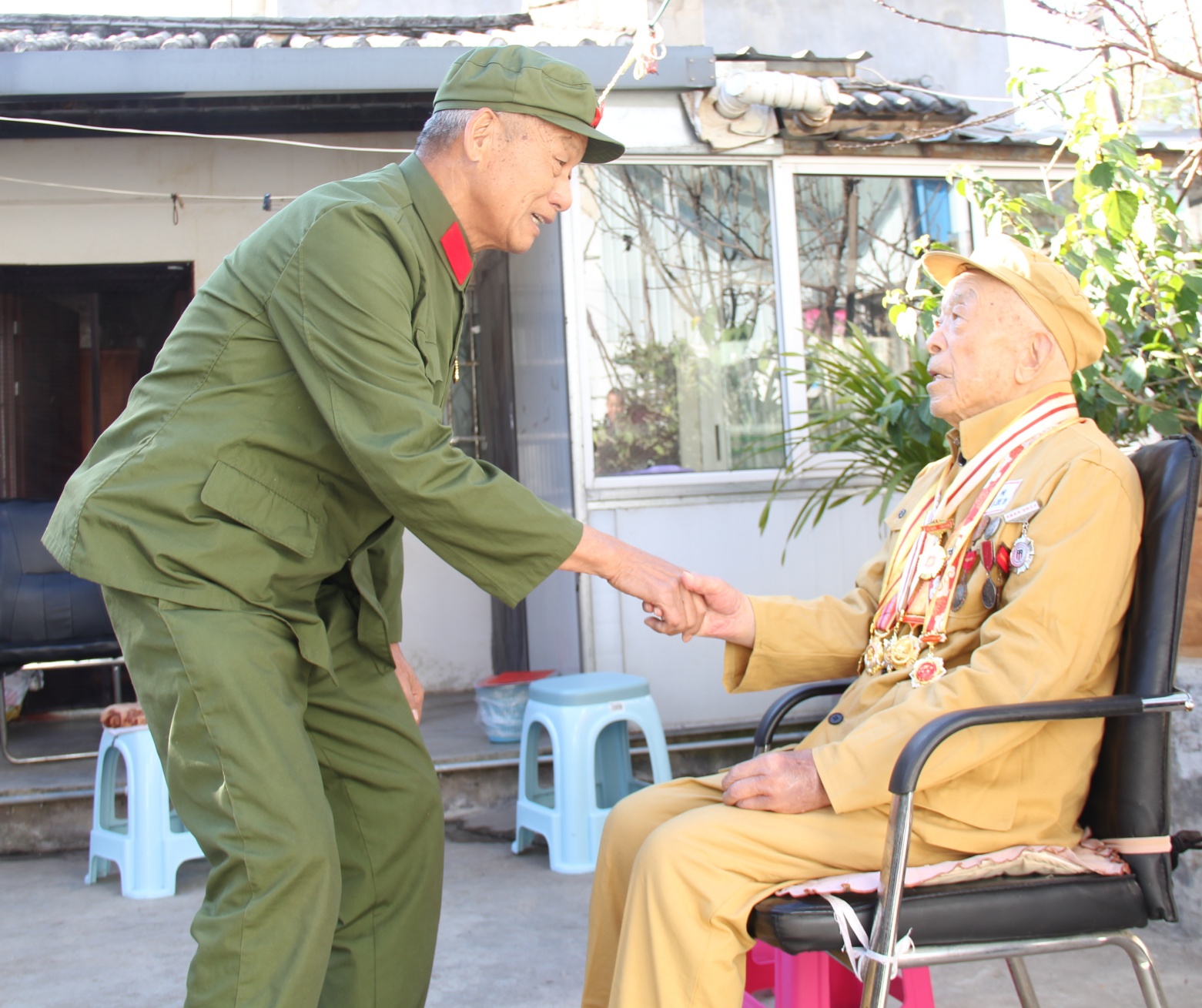 今天上午十点钟,云南省祥云县祥城镇华严社区的一个居民小院喜气洋洋,虽然户外天气还有些寒冷,但丝毫没有影响参加看望慰问志愿军老战士活动的人们参加的热情。