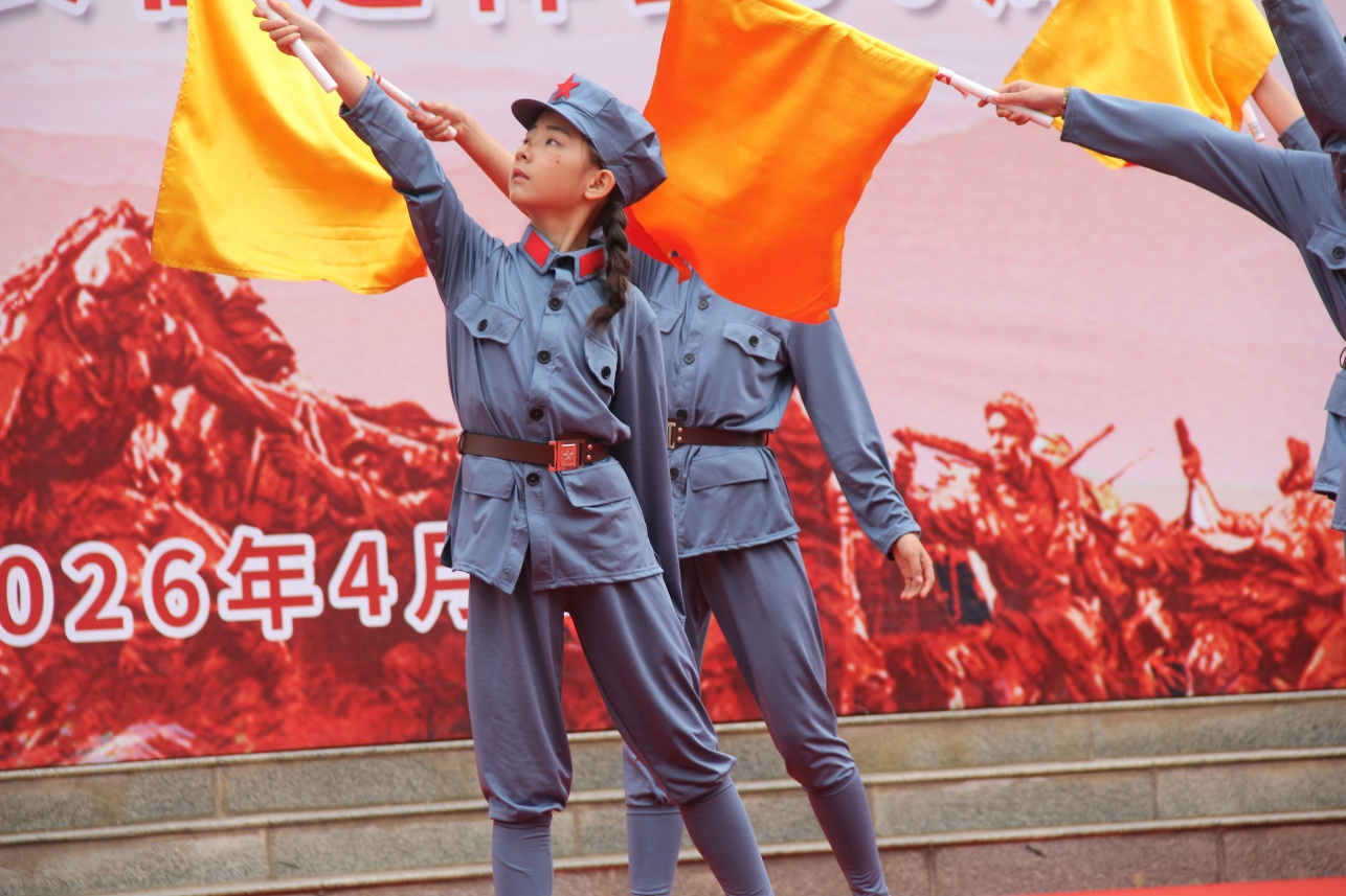 铿锵的舞步,是少年们对先辈的深情礼赞。当孩子们的身影化作红旗上跳动的星火,仿佛穿越了时空。