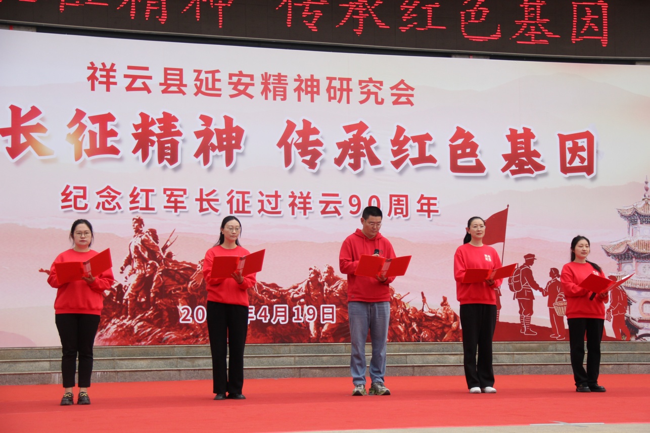 “一面旗帜/ 引领一支队伍/ 一种信念/ 点燃一把火炬。”慷慨激昂的朗诵,纪念红军长征过祥云90周年,讴歌红军长征90周年,“长征是宣言书,长征是播种机,长征是宣传队,长征是镰刀斧头拥抱在一起的智慧,是星星之火走到哪里就燎原在那里”的豪言壮语,久久回响在耳旁。