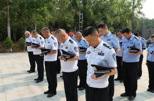 祭奠仪式上,全体人员列队肃立,向为国家独立、民族解放、边疆安宁奉献牺牲的革命烈士脱帽默哀。过程中,民警们低头垂首,回顾烈士事迹,感悟英烈精神,哀思流淌。