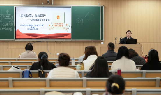 “宪法宣传周”,昆明市西山区人民检察院联合区教育体育局,于12月4日在云大附中西山校区举办校园欺凌防治专题培训。全区115名中小学心理教师齐聚一堂,共同接受了一场融合心理学方法与司法实务的专业指导。