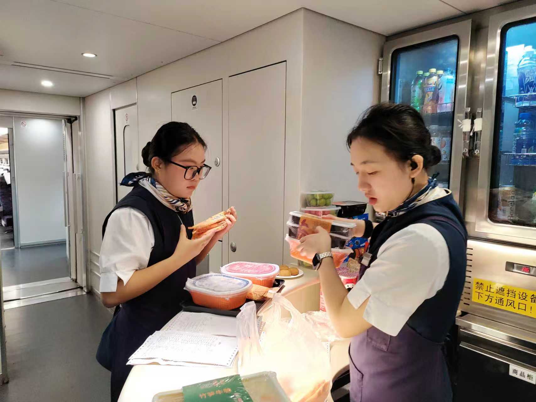 从昆明开往广州南的D3824次列车上,乘客王慧光说“这个鱼香肉丝很好吃,平常我在学校也经常点鱼香肉丝,没想到今天在列车上也能点到这个鱼香肉丝,让我想到了以前在学校的快乐。”