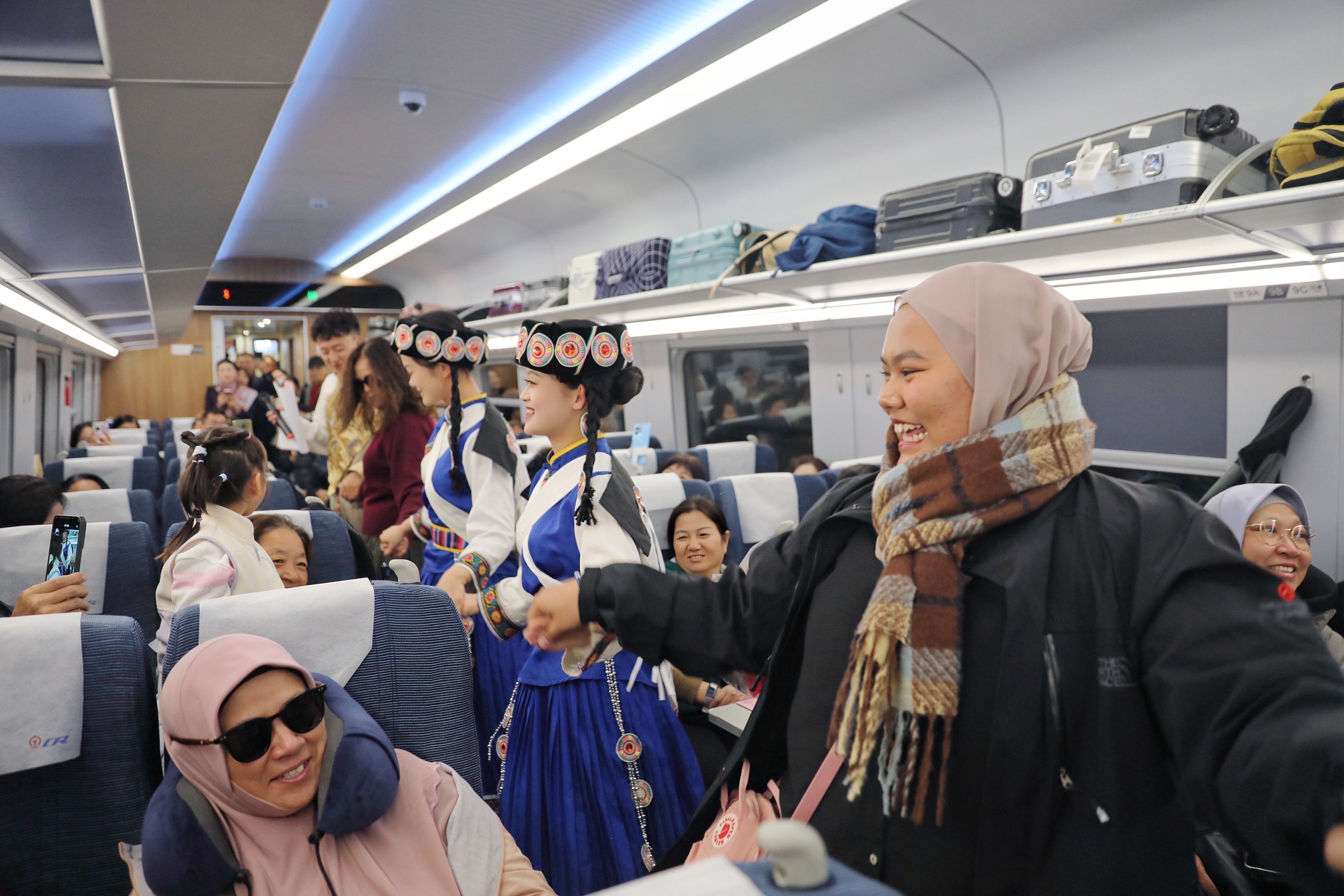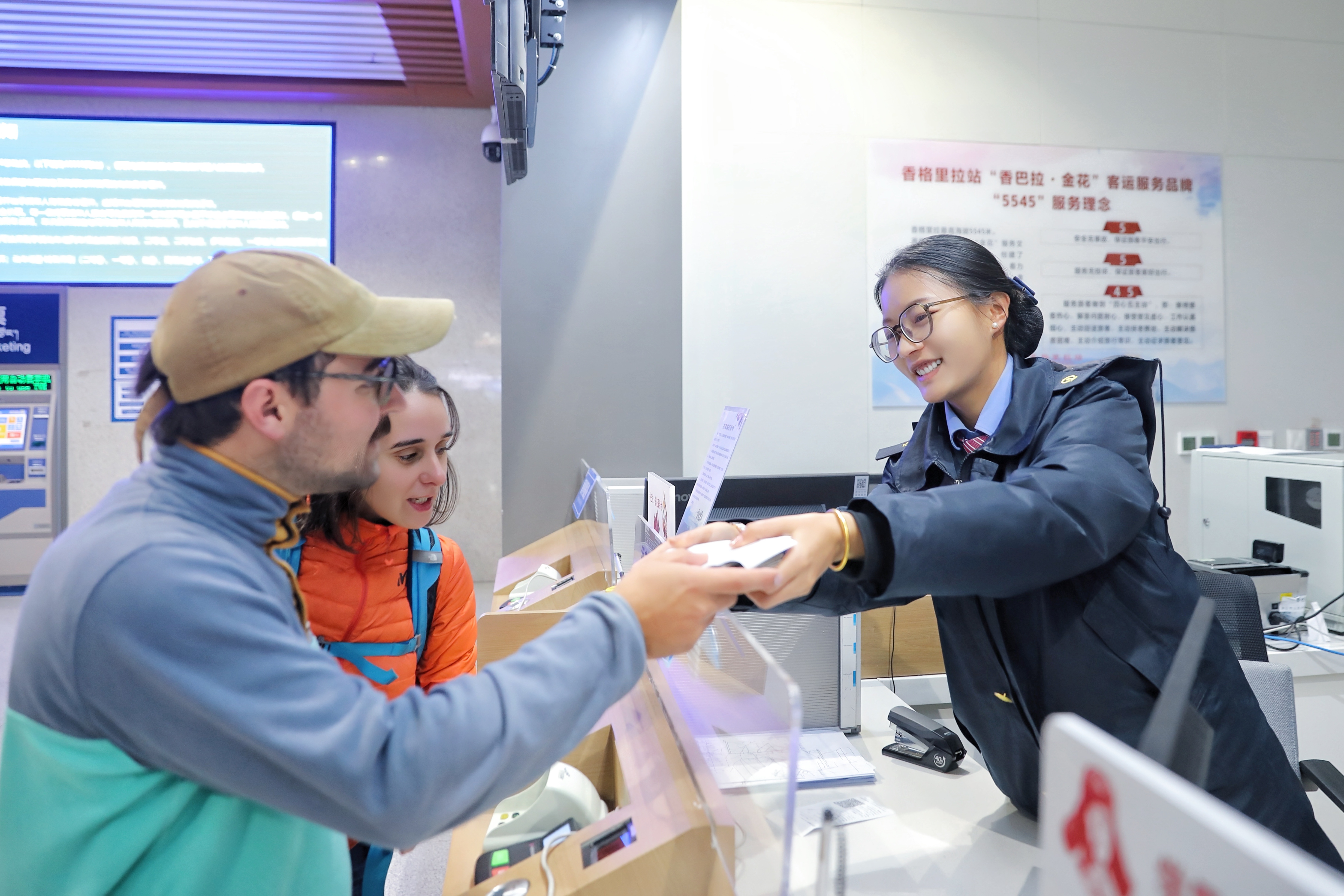 据了解,丽香铁路开通以来,国铁昆明局紧紧围绕“美丽云岭天路 民族团结纽带”重要定位,在香格里拉、丽江等车站打造“玉龙·金花”“香巴拉·金花”等服务品牌,车站和列车上推出“汉语+民族语+英语”三语服务,列车上采用藏族独有的格桑花图案定制列车台布、靠枕套等,营造良好、舒适的乘车环境。打造“扎西食集”主题餐吧,推出“一路茶香”可甜可咸特色酥油茶,提供松茸、牦牛奶酪、藏式糌粑能量棒、藏香干巴牛肉、牦牛肉馅饼等高原美食,创新提供防烫提示贴、暖心加热桶和热藏盒饭等个性化服务。此外,丽江、香格里拉等车站还积极对接当地交通部门,开通车站到景区直达客车,不断优化和完善车站周边交通驳接,为旅客提供便捷换乘。